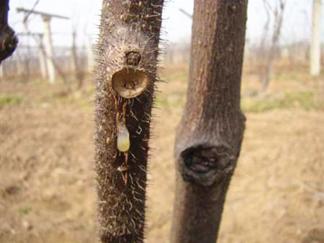 ②管理過程中做好全園植株情況檢查,對(duì)于傷口處出現(xiàn)流白色菌膿的植株,應(yīng)立即剪除或刮除發(fā)病部位并將病部組織帶出園外銷毀。